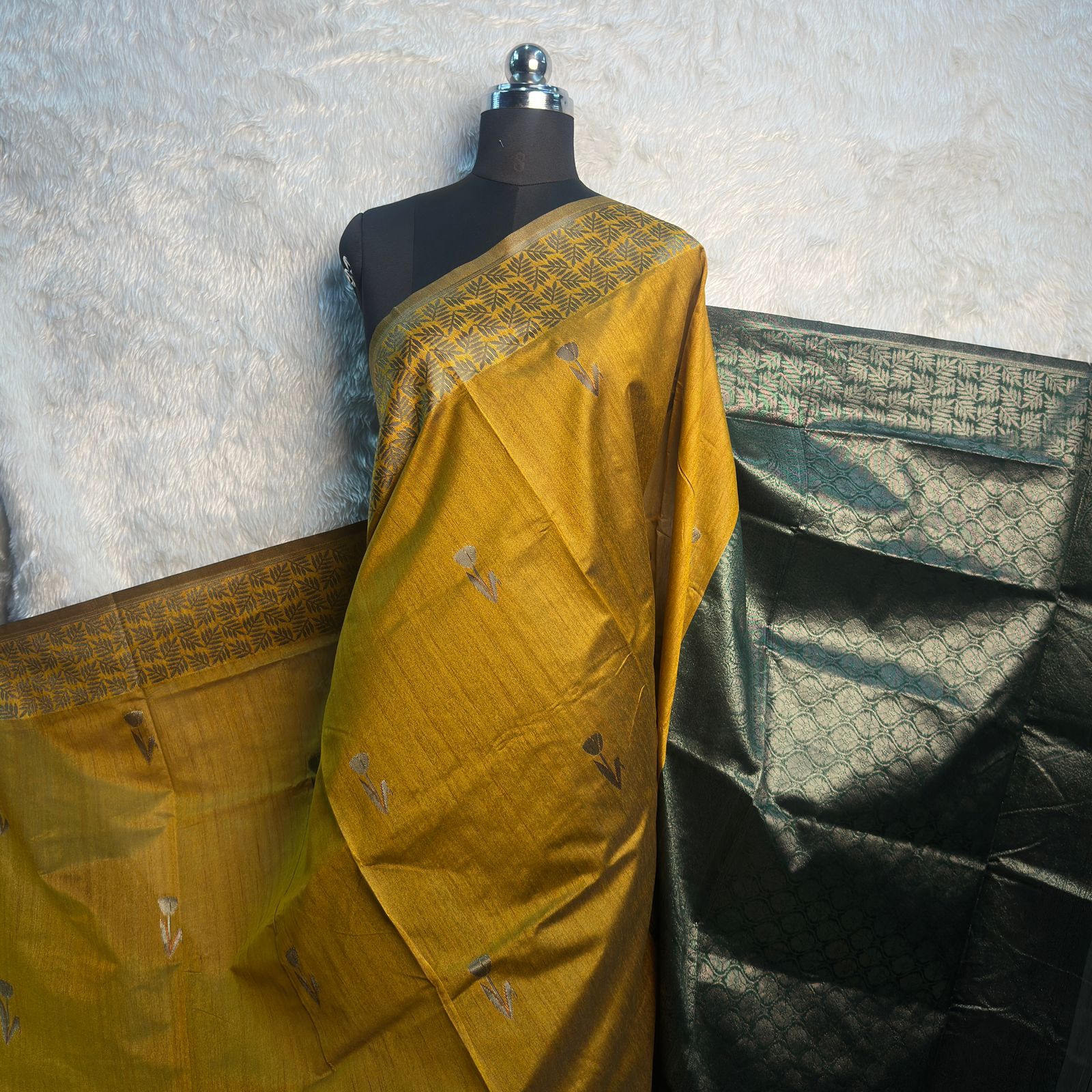 Traditional Karela Saree with Small Green Dotted Pattern