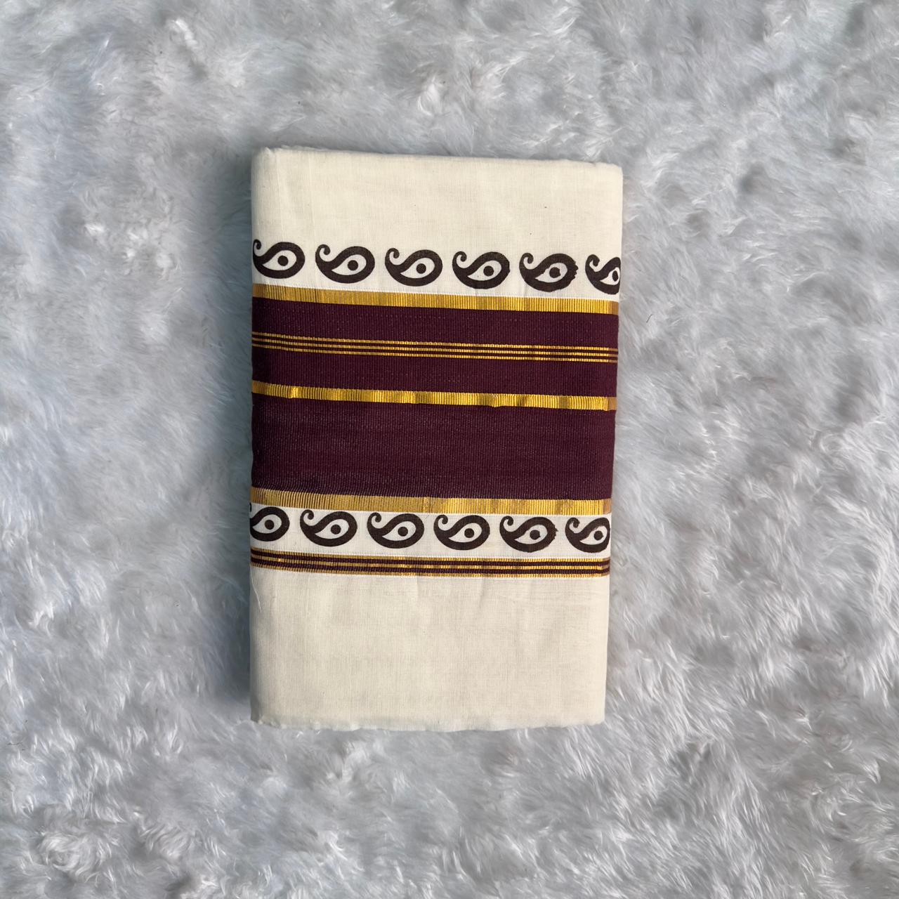 Temple Border Set Saree with Meroon Border